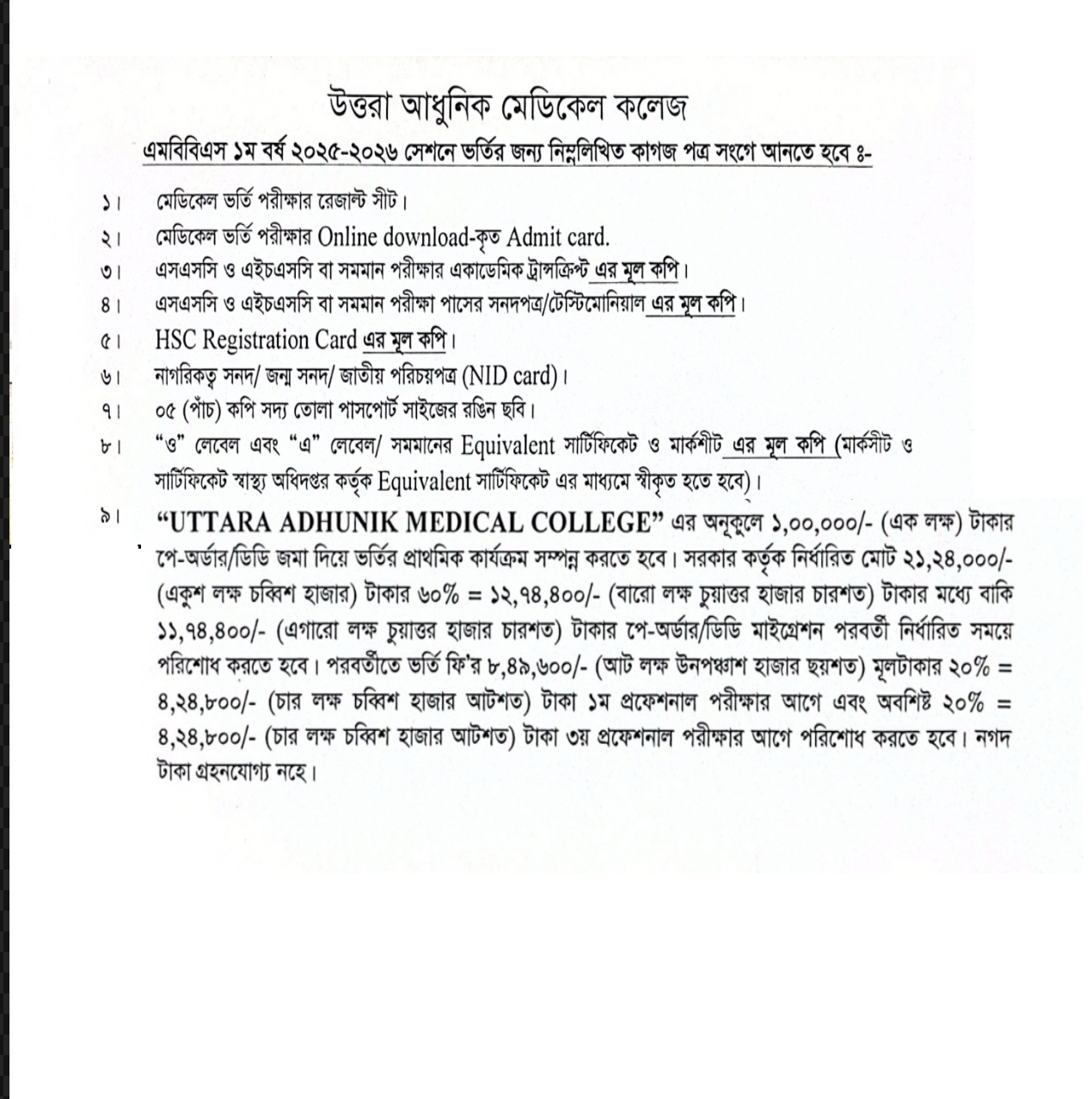 Notice Board - Necessary documents for MBBS admission